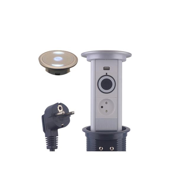 Aluminum Alloy Motorized Pop Up Socket Electricity Protection With Bluetooth Speaker Images |